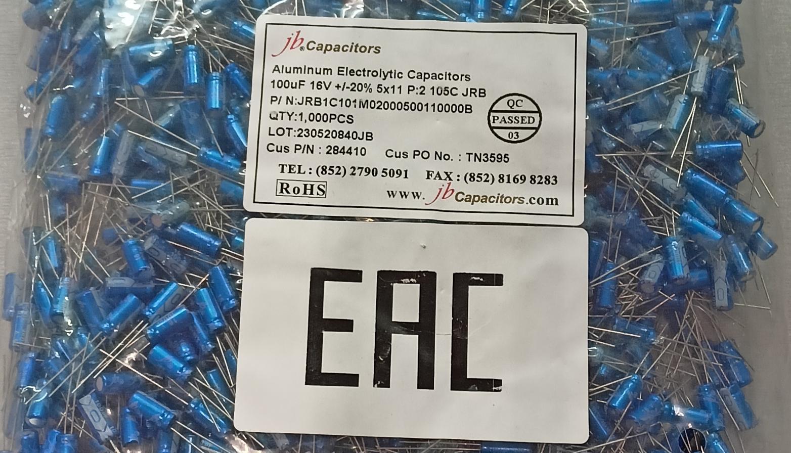 100uF x 16V 106JRB 5x11 JB JRB1C101M02000500110000BST цена за 1шт при количестве 1000шт3.12р.2000 шт.