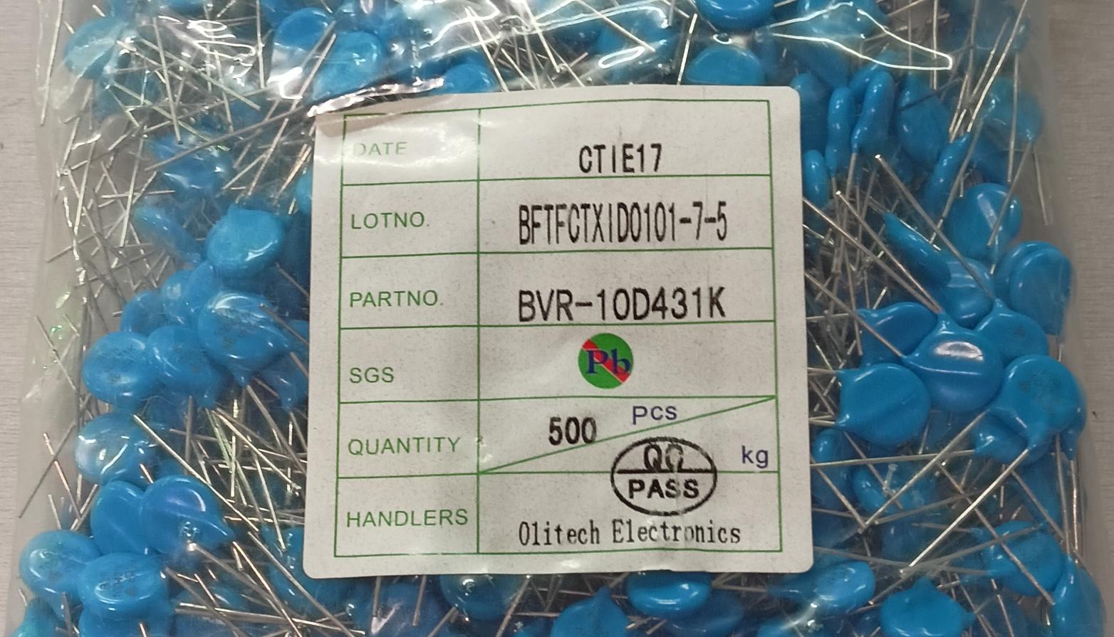 варистор 431KD10 RMS 275V BVR-10D431K 10K431 Olitech цена за 1шт при количестве 500шт