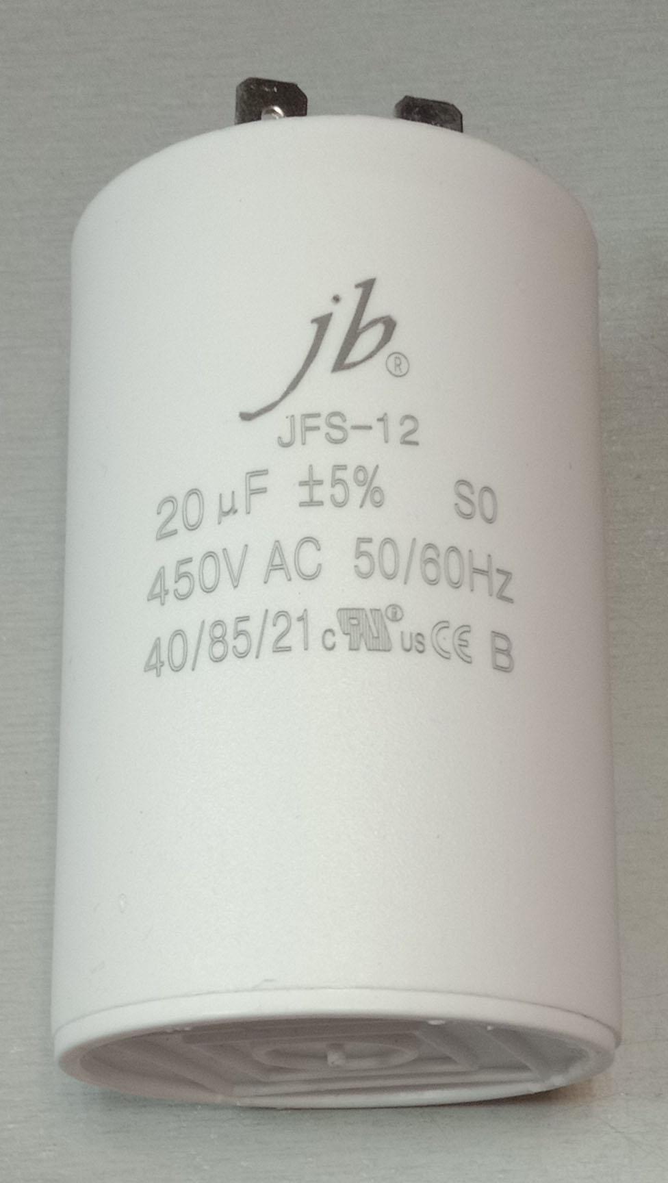 Конденсаторы пусковые CBB60 в цилиндрическом корпусе > конденсатор пусковой 20uF 450V 85C 50/60Hz клеммы 45x70mm 40x74mm 40x65mm JB JFS-12 CBB60-A JFS12A6206J000000B