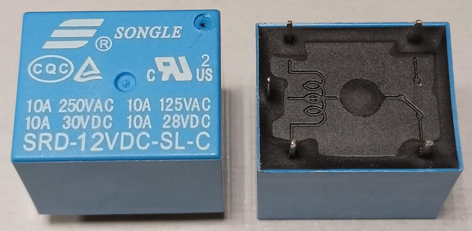 реле SRD-12VDC-SL-C 12V 5PIN 19x15x15mm 10A 250VAC Songle Relay 1 переключение