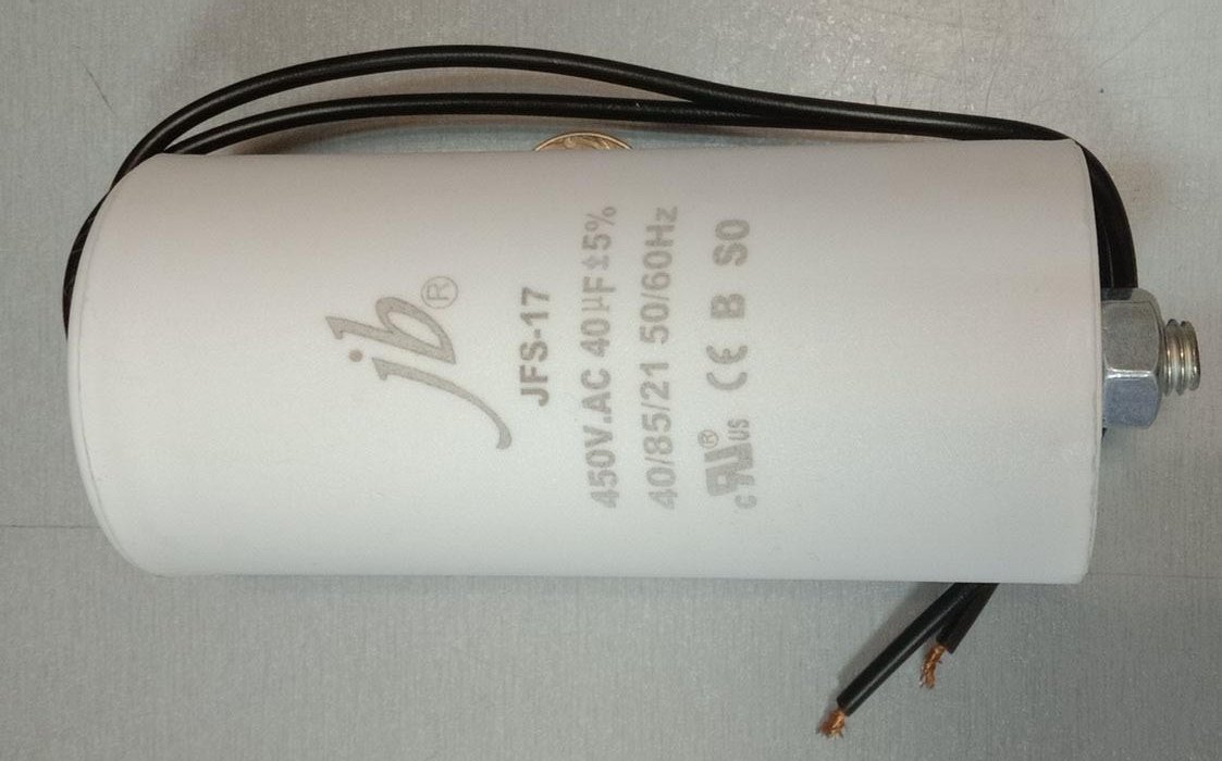 конденсатор пусковой 40uF 450V 85C 50/60Hz провода+болт 50x103mm JB JFS-17 CBB60-K JFS17A6406J000000B