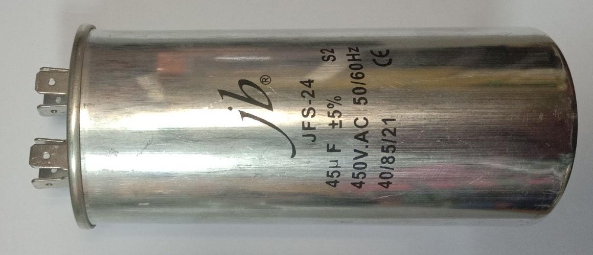 конденсатор пусковой 45uF 450V 5% 85C 50/60Hz клеммы аллюм корпус 50x110mm JB JFS-24 CBB65 JFS24A6456J000000B