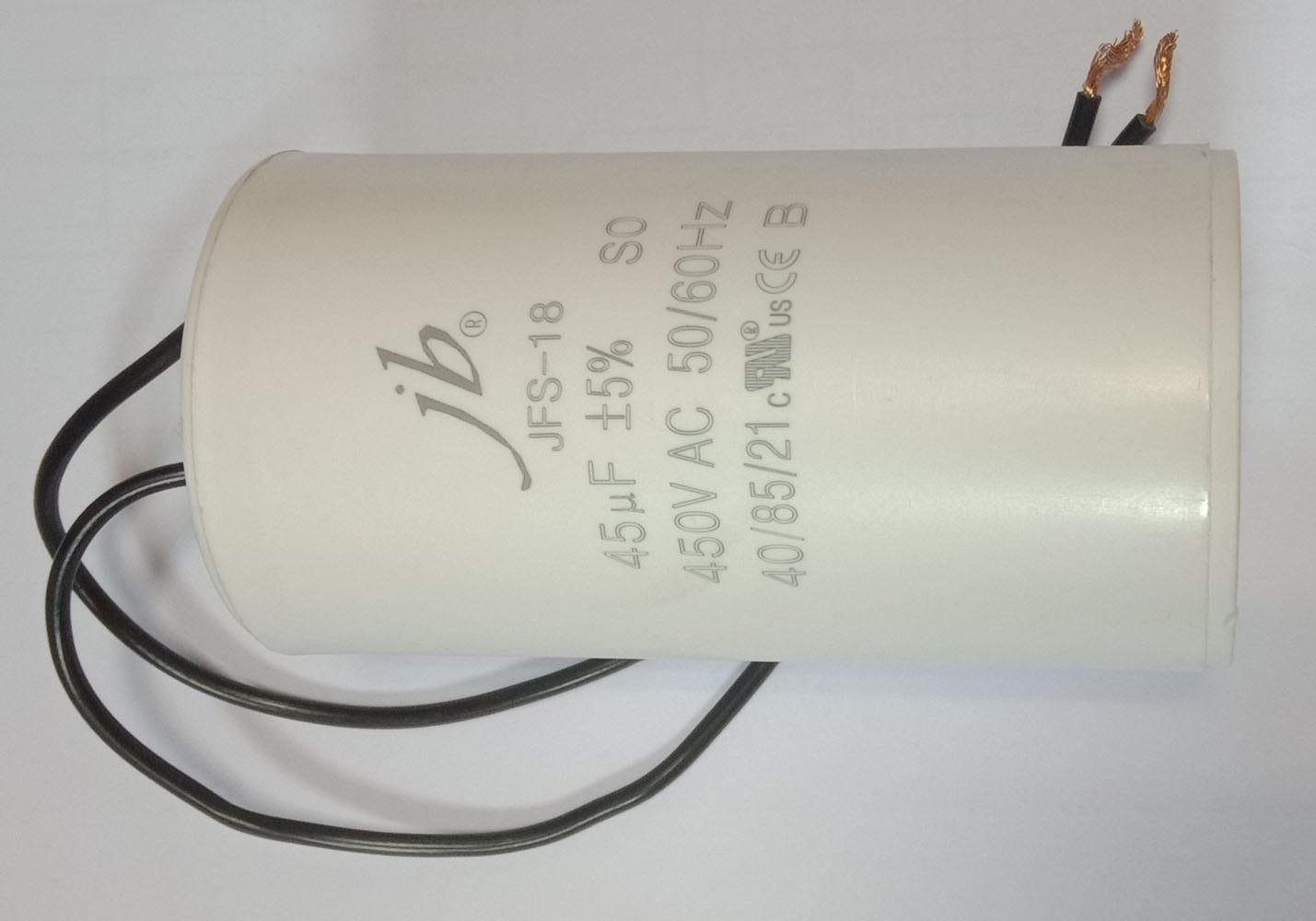 конденсатор пусковой 45uF 450V 85C 50/60Hz провода 50x95mm JB JFS-18 CBB60-A JFS18A6456J000000B