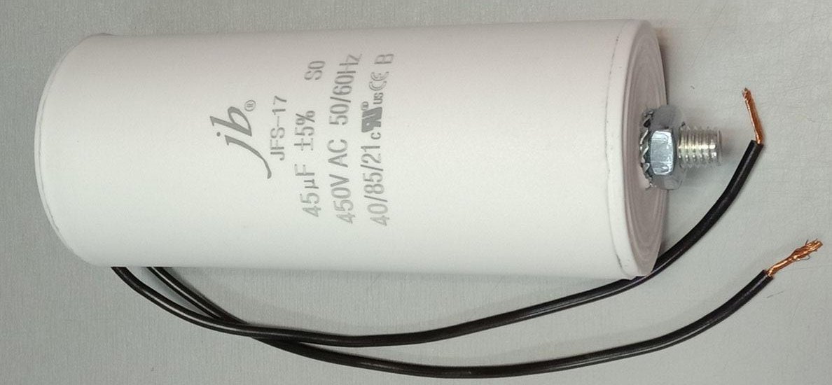 конденсатор пусковой 45uF 450V 85C 50/60Hz провода+болт 50x110mm JB JFS-17 CBB60 JFS17A6456J000000B