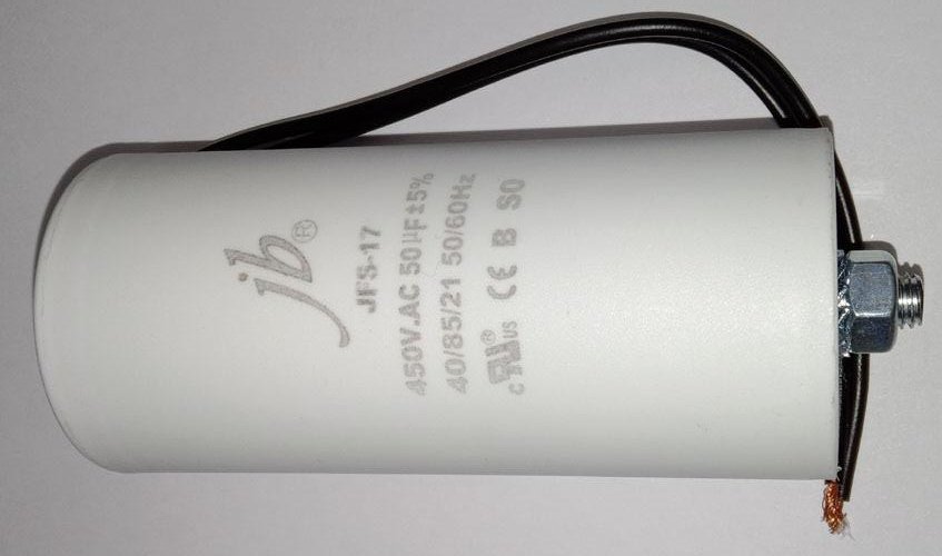 конденсатор пусковой 50uF 450V 85C 50/60Hz провода+болт 45x100mm JB JFS-17 CBB60-A JFS17A6506J000000B
