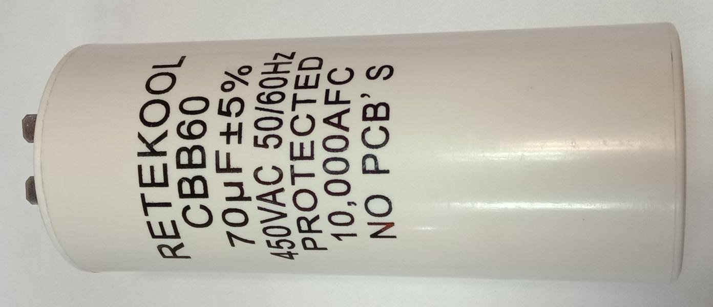 конденсатор пусковой 70uF 450V 85C 50/60Hz клеммы 50x120mm Retekool CBB60