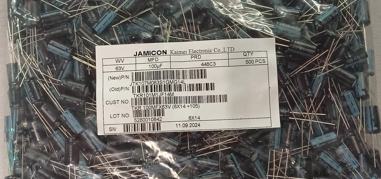 100uF x 63V 105TKR 8x14 Jamicon TKR101M1JF14M цена за 1шт при количестве 500шт