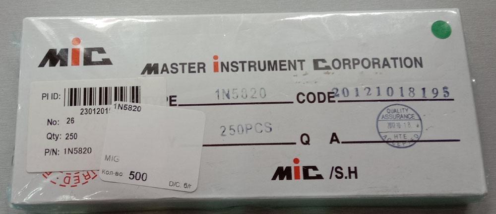1N5820 3A 20V DO-201AD MIC цена за 1шт при количестве 250шт