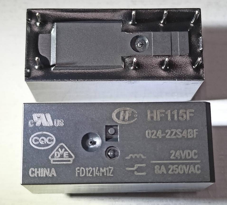 реле HF115F-012-2HS4A 6PIN 29x12x15mm 12V 8A 250VAC HONGFA 2 группы на перекеключение