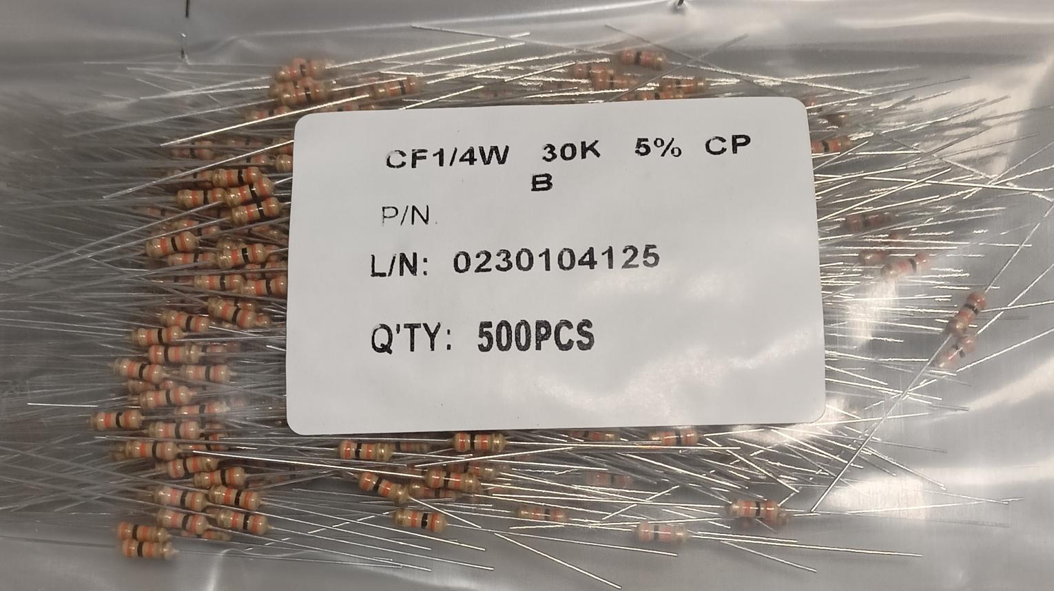 резистор 0,25W 30ком 5% CF цена за 1шт при количестве 500шт