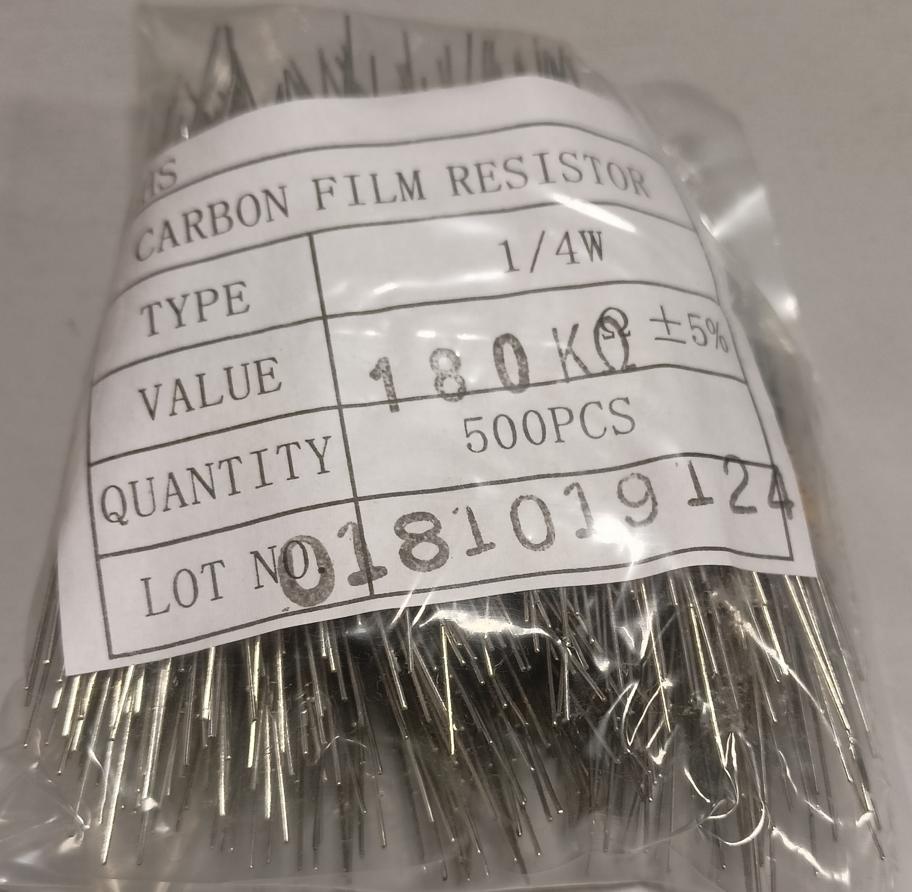 резистор 0,25W 180ком 5% CF цена за 1шт при количестве 500шт