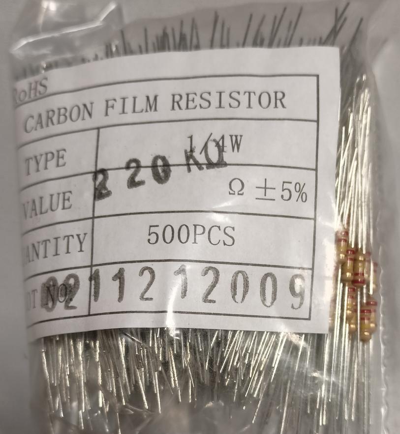 резистор 0,25W 220ком 5% CF цена за 1шт при количестве 500шт