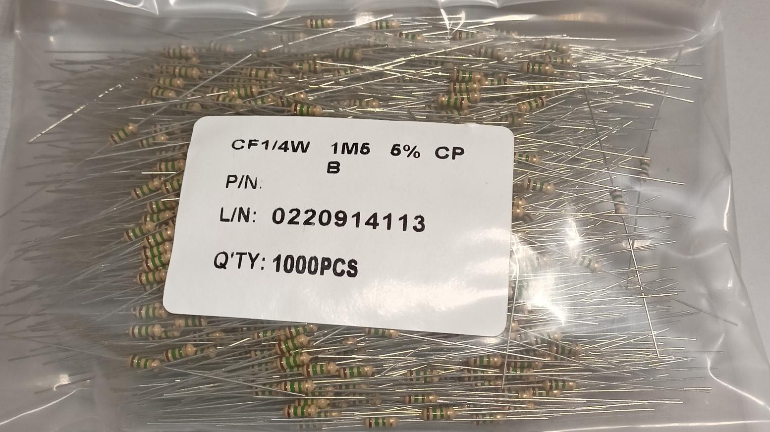 резистор 0,25W 1,5мом 5% CF цена за 1шт при количестве 1000шт