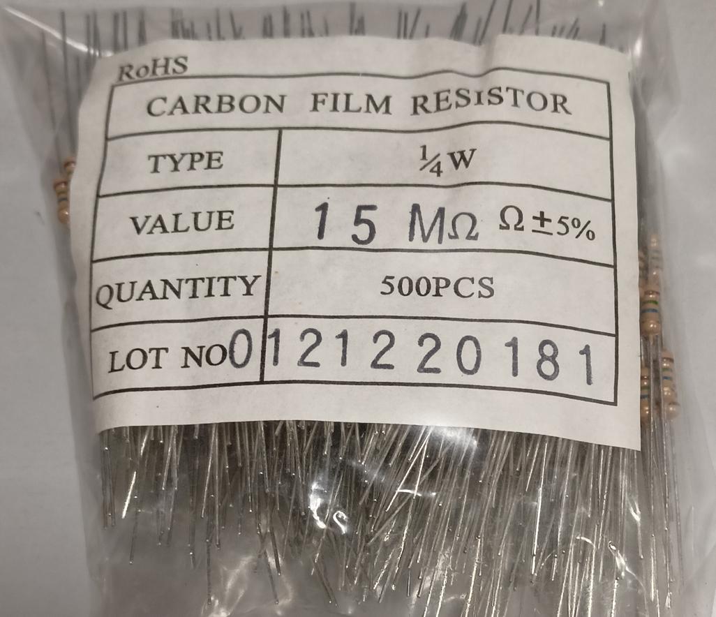 резистор 0,25W 15мом 5% CF цена за 1шт при количестве 500шт