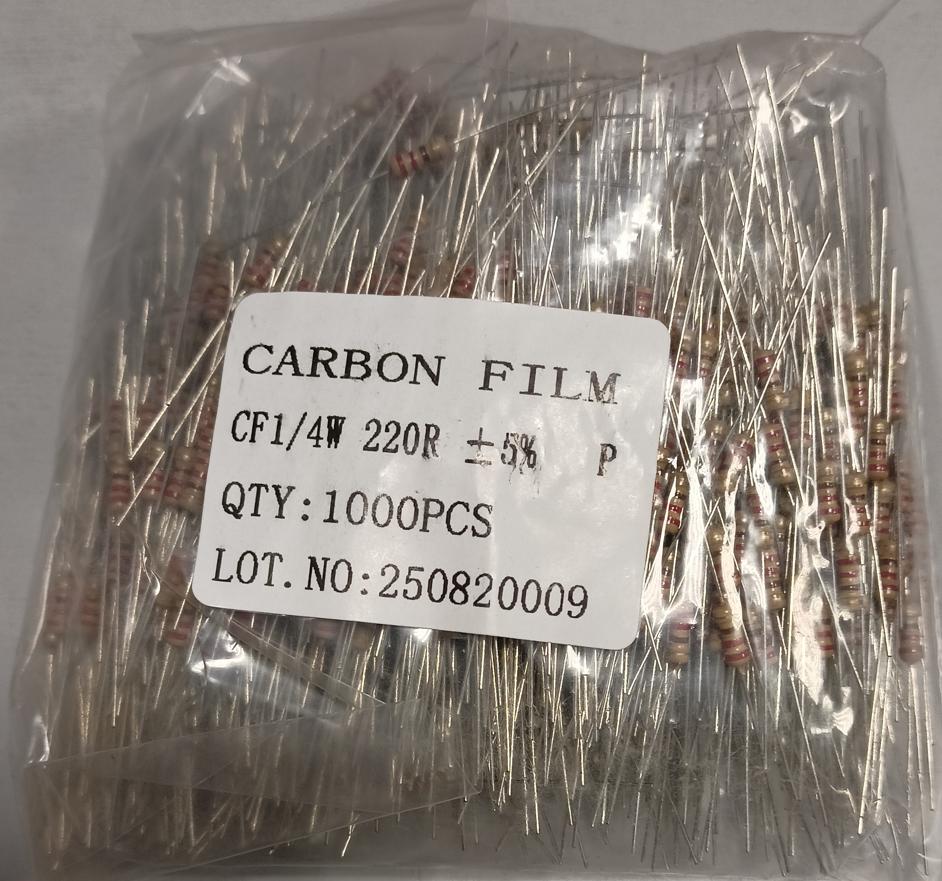 резистор 0,25W 220ом 5% CF цена за 1шт при количестве 1000шт