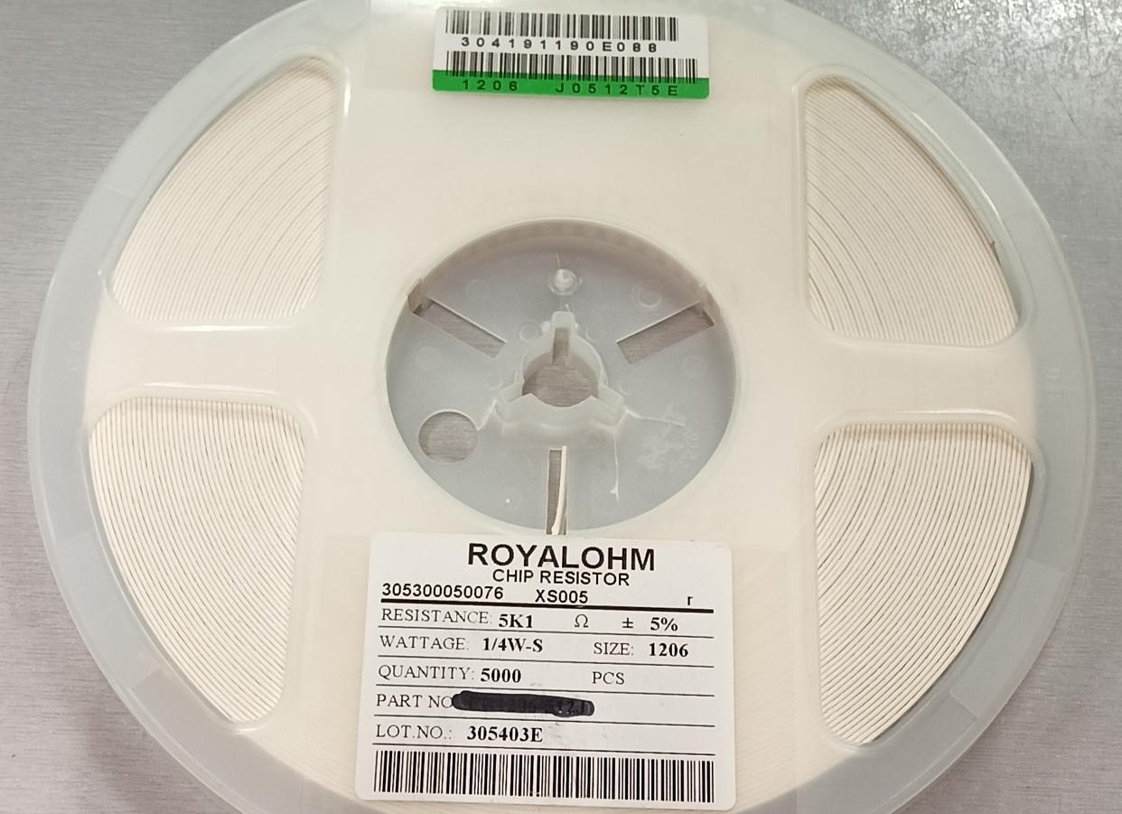 ЧИП резистор 1206 5,1ком 5% Royalohm 1206S4J0512T5E цена за 1шт при количестве 5000шт