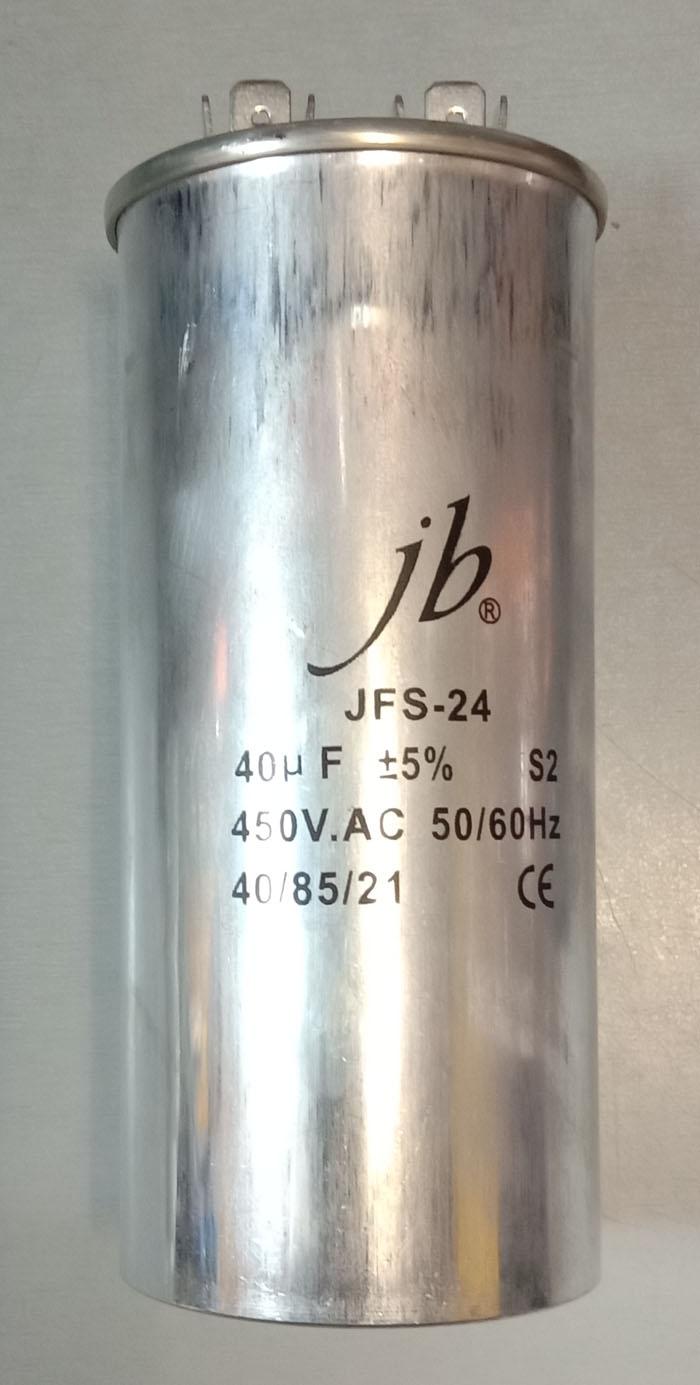 Конденсаторы пусковые CBB60 в цилиндрическом корпусе > конденсатор пусковой 40uF 450V 5% 85C 50/60Hz клеммы аллюм корпус 50x110mm JB JFS-24 CBB65A JFS24A6406J000000B