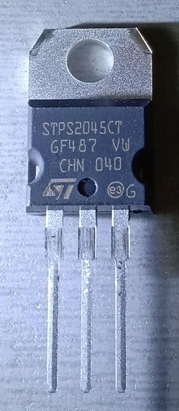 диод STPS2045CT TO220 ST 2х10A 45V аналог MBR2045