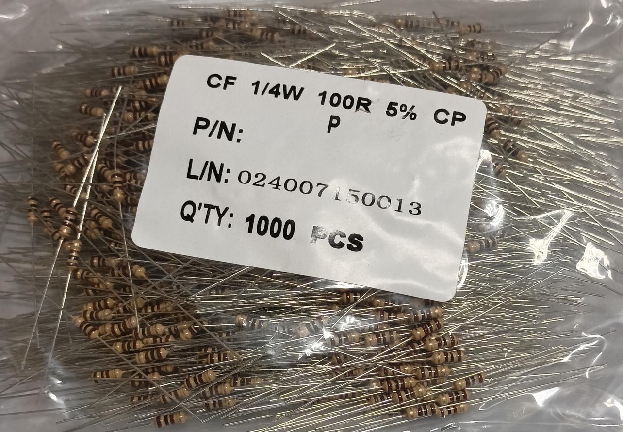резистор 0,25W 100ом 5% CF цена за 1шт при количестве 1000шт