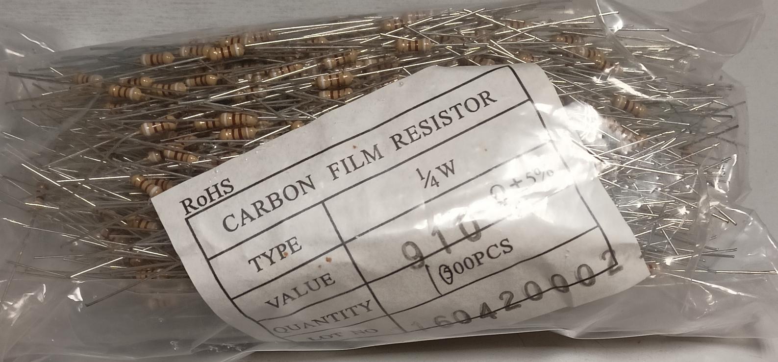 резистор 0,25W 910ом 5% CF цена за 1шт при количестве 1000шт