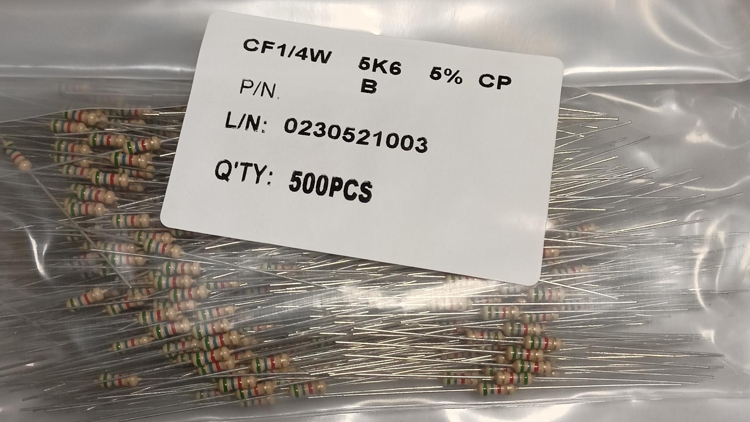 резистор 0,25W 5,6ком 5% CF цена за 1шт при количестве 500шт
