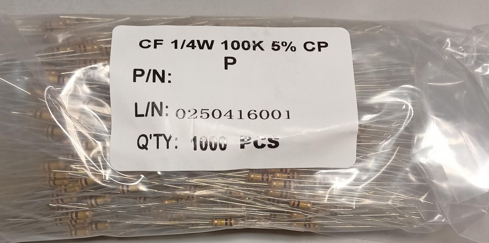 резистор 0,25W 100ком 5% CF цена за 1шт при количестве 1000шт
