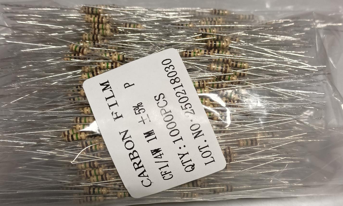 резистор 0,25W 1мом 5% CF цена за 1шт при количестве 1000шт