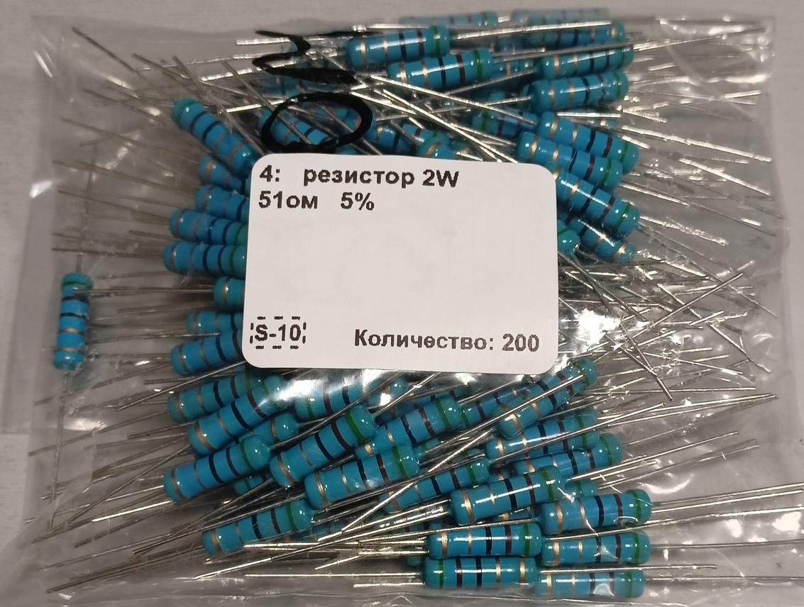 резистор 2W 51ом 5% MF-2 цена за 1шт при количестве 100шт