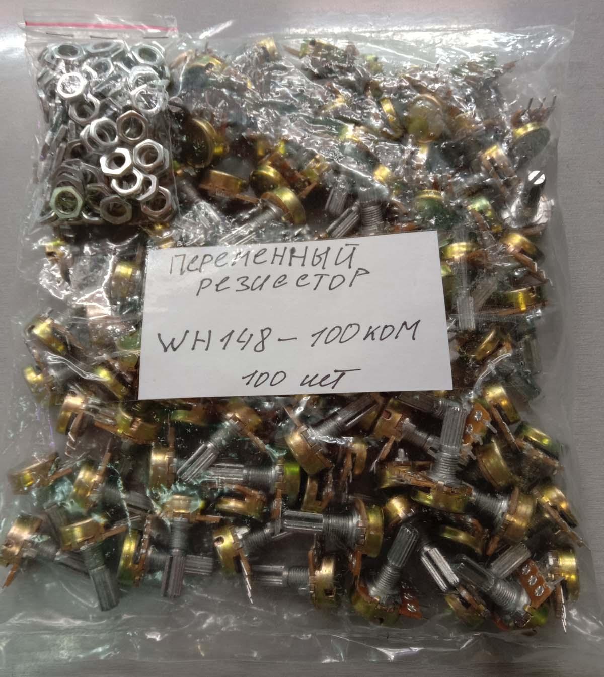 Резисторы переменные > резистор переменный 3ноги 16мм 100ком под гайку линейный WH148 цена за 1шт при количестве 100шт