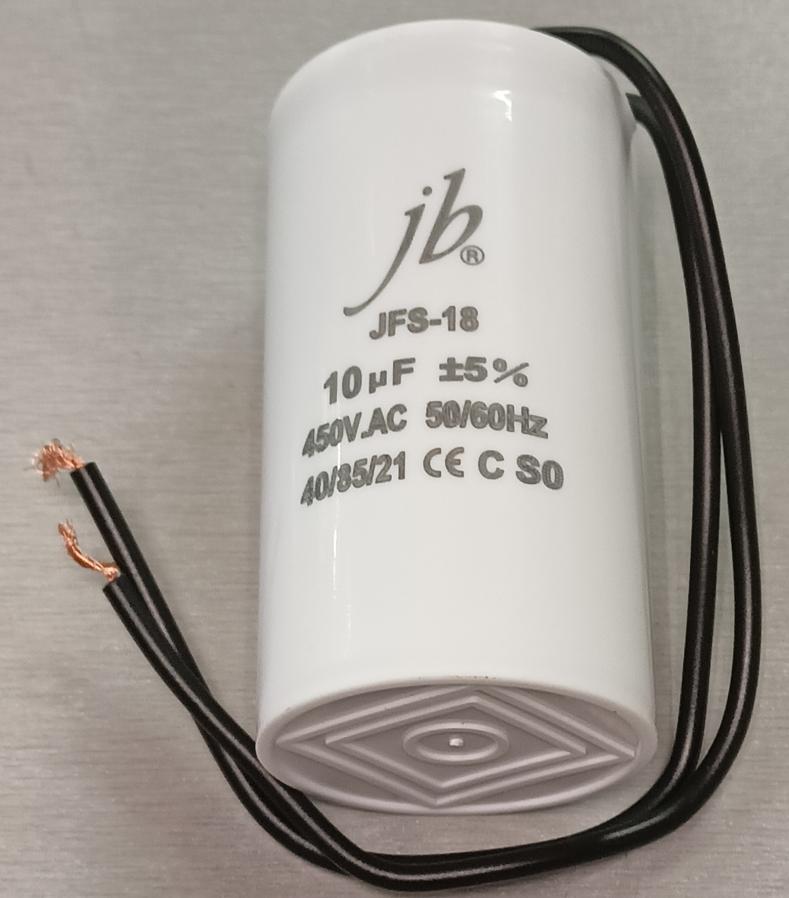 Конденсаторы пусковые CBB60 в цилиндрическом корпусе > конденсатор пусковой 10uF 450V 85C 50/60Hz провода 35x65mm JB JFS-18 CBB60 JFS18A6106J000000B