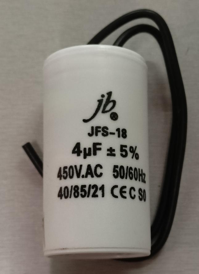 конденсатор пусковой 4uF 450V 5% 85C 50/60Hz провода 30x55mm JB JFS-18 CBB60-K JFS18A6405J000000B